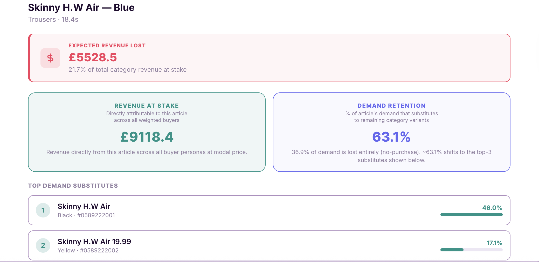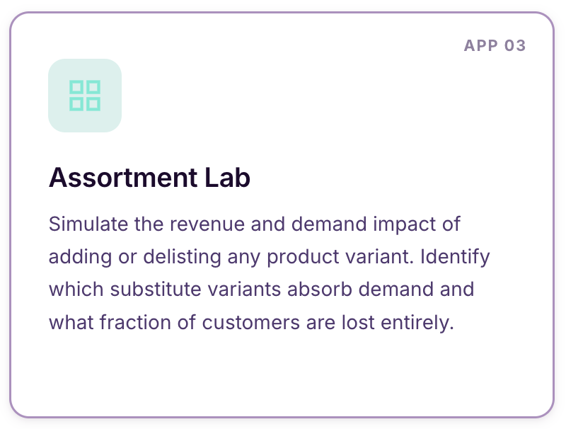 The result is a living simulation of your customer base that estimates complex substitution, cannibalization, and churn patterns to power your merchandising decisions.